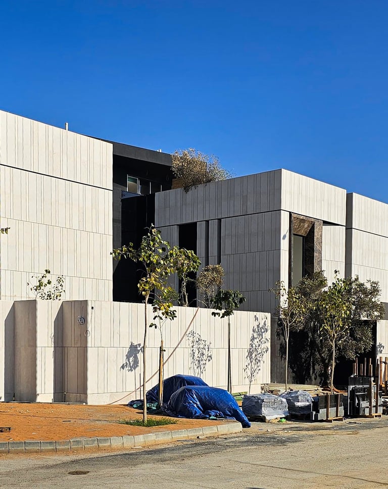 The site in Al-Narjis (Masharef Hills) 420 square meters and features an innovative architectural design that incorporates a blend of wood and black stone, adding a luxurious and modern touch to the project. These materials are integrated in a way that strikes a balance between nature and contemporary architecture.